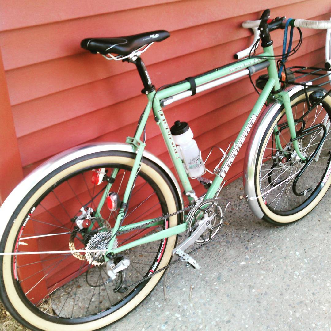 #compasstires rat traps under #tanaka 559/60 alloy fenders. Good fit. Lots of space. #elephantbikes #nationalforestexplorer