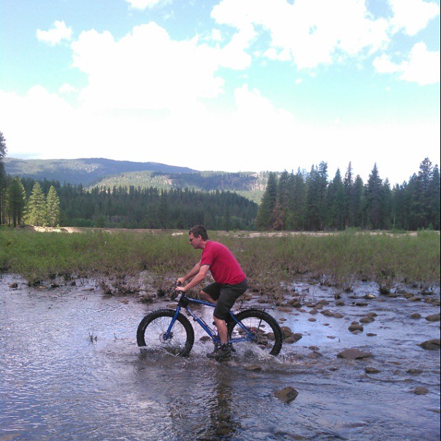 Alex fording the fjord on the #pugsley. #ferrycounty #kettleriver
