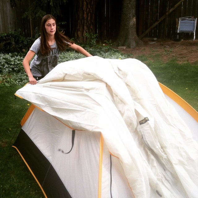 Back yard shakedown. @maddieee_321 will be Chief of Tent Logistics during our #summerbiketour.