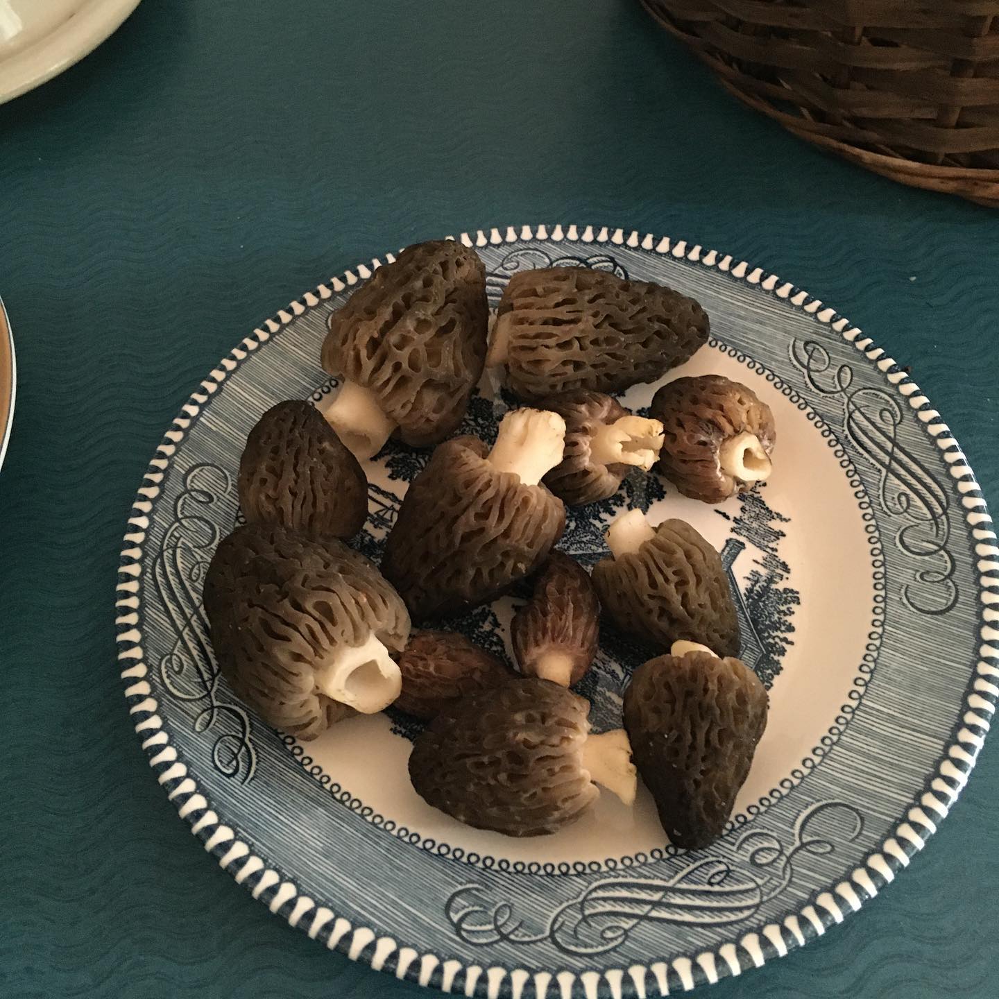 First #morel of the season! Let the games begin! A perfect dozen: a modest haul in our first foray. But we’re grateful! they’re perfect specimens for a little appetizer taste tonight. Rain is coming. Temps are warm. Expectations are high for the weekend.
