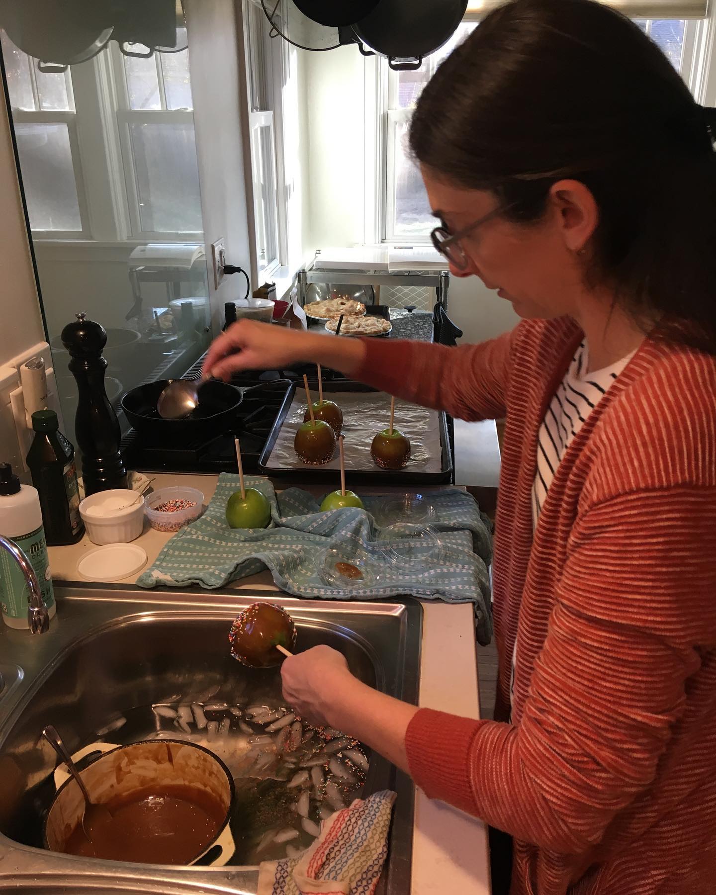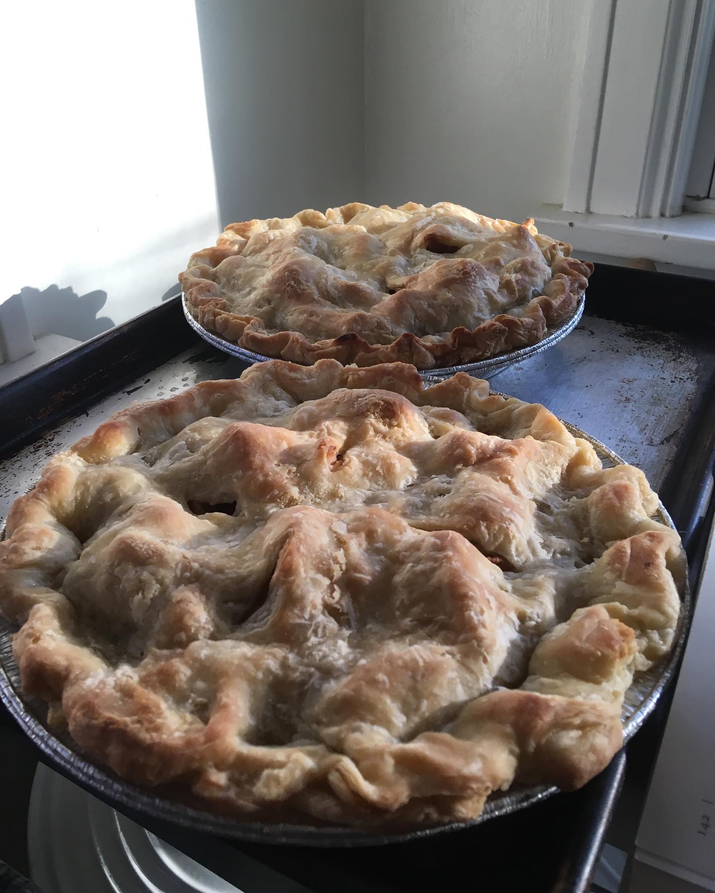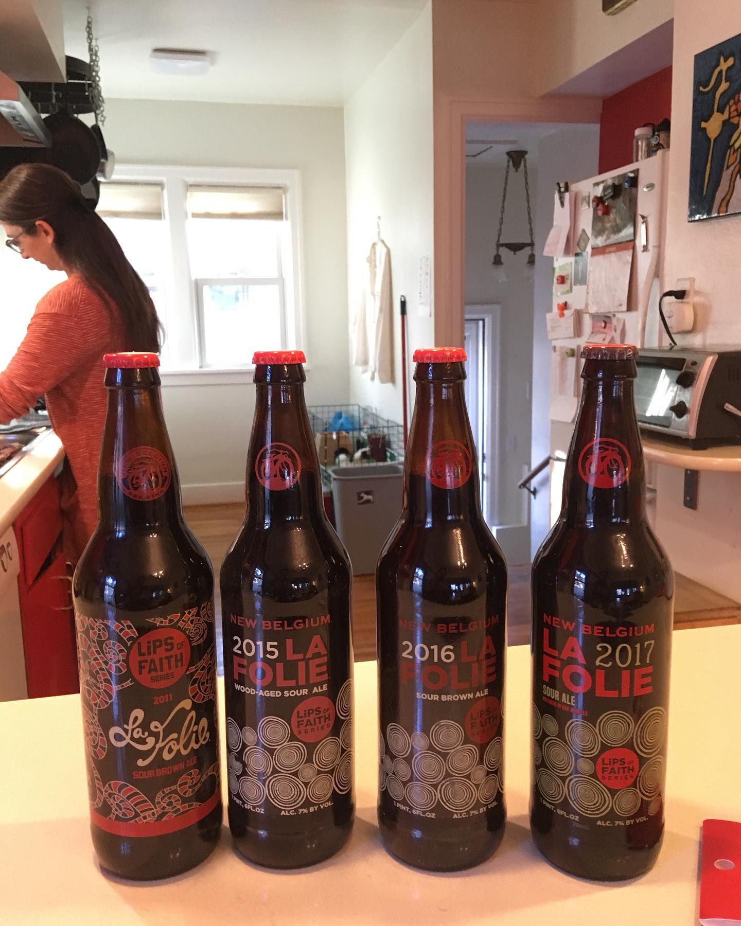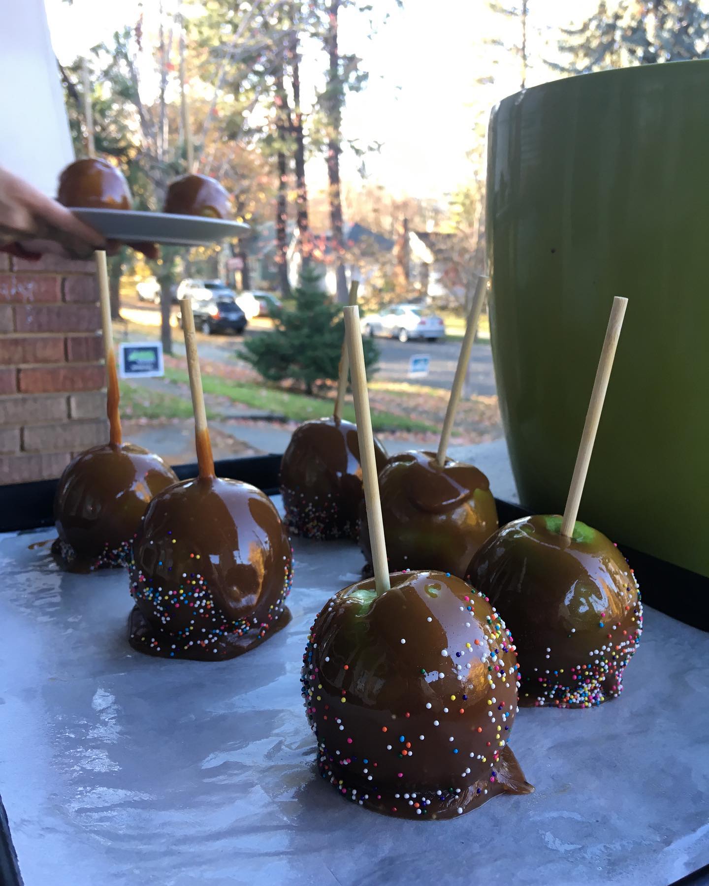 I married up. LXM busted out two apple-pear pies and a gaggle of caramel apples. These will go as prizes tomorrow at #inwcx and @schoolofcx hosted #CX race. It’s all day @bigbarnbrewing. My contribution: a collection of aged @newbelgium #lafolie beers.