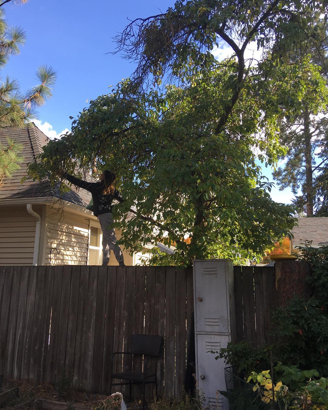 Picking Italian plums. Now we’ll have to make something.