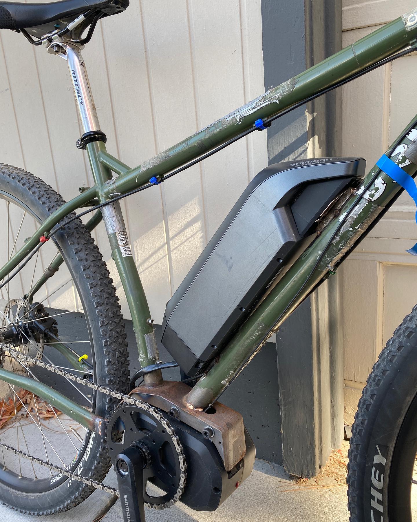 Project e-hack complete. Works as advertised. Donated @surlybikes ogre frame with failed chainstay weld. Shimano steps unit+battery was a take off donation from @tommythe_____ All it needs is a dropper!