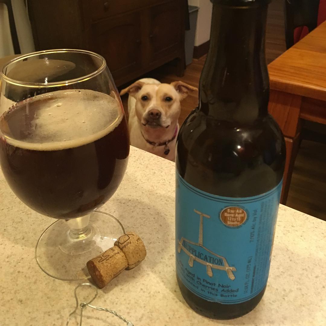 Supplication from @russianriverbrewing. The last of my stash from about 2013. Aged super well. And @daisydoodlethedog approved.
