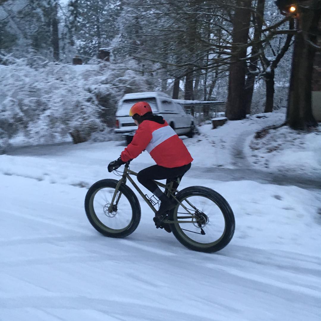 Rolling to @benniditospizza with Child 1. #surlybikes #pugsly