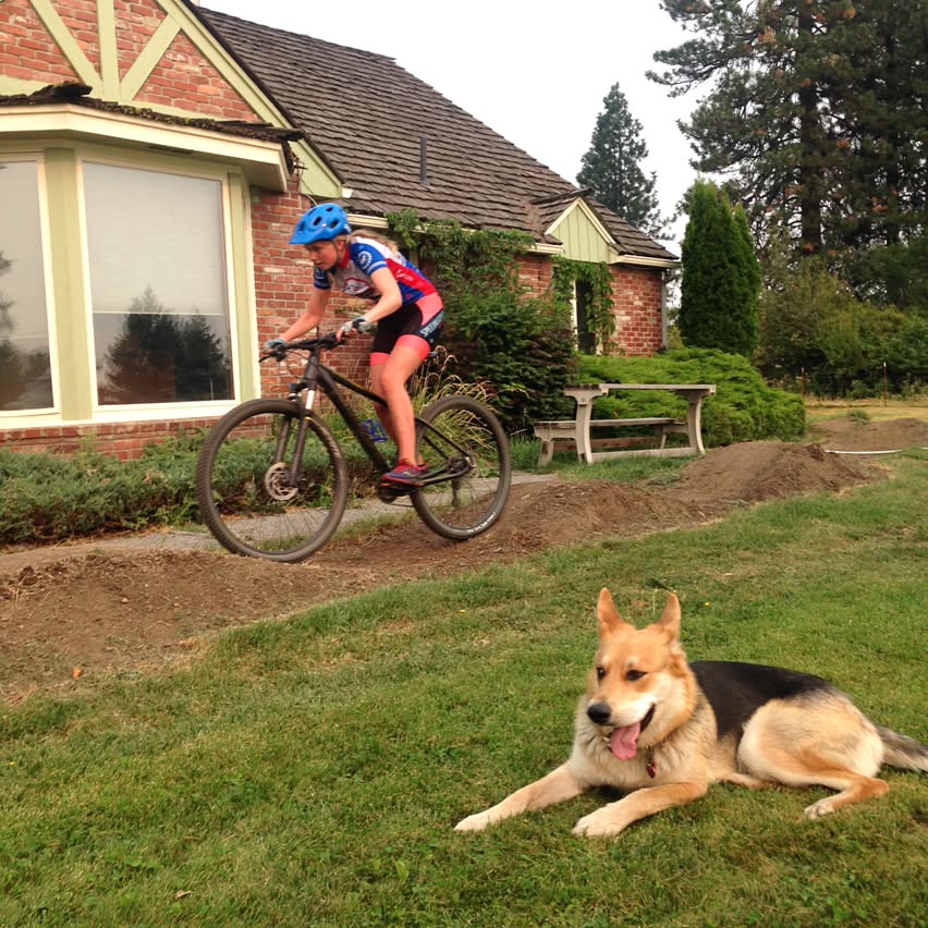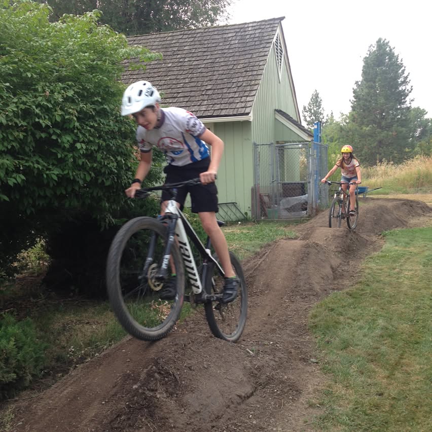 Ben @cave_mfg hosted a pump track sesh this morning for @maddie_speare and her friends @hugh___c and @linneasunderman.