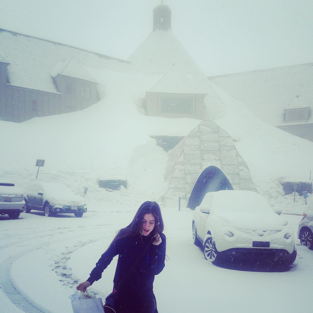 Child 1. talking to the little boy who lives in her throat, as the #timberlinelodge looks on.