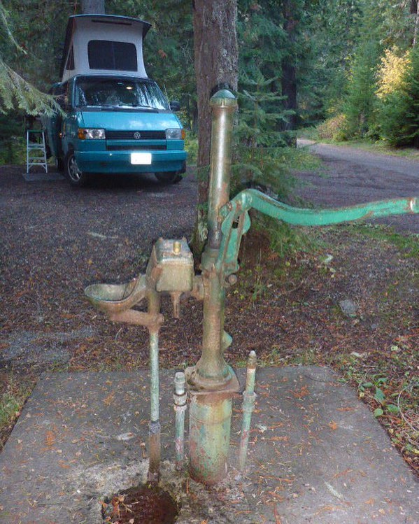 St. Joe region of the Panhandle Natl Forest is unlike the other national forests I've visited in this region: it's super clean. Too much trouble and distance for the beer can bros to spoil. I plan on spending a lot more time in that area next year. There's endless cycling, hiking, and fly fishing potential up there. This pump was near the end of the pavement at a pristine site on the river, where we were one of two parties.