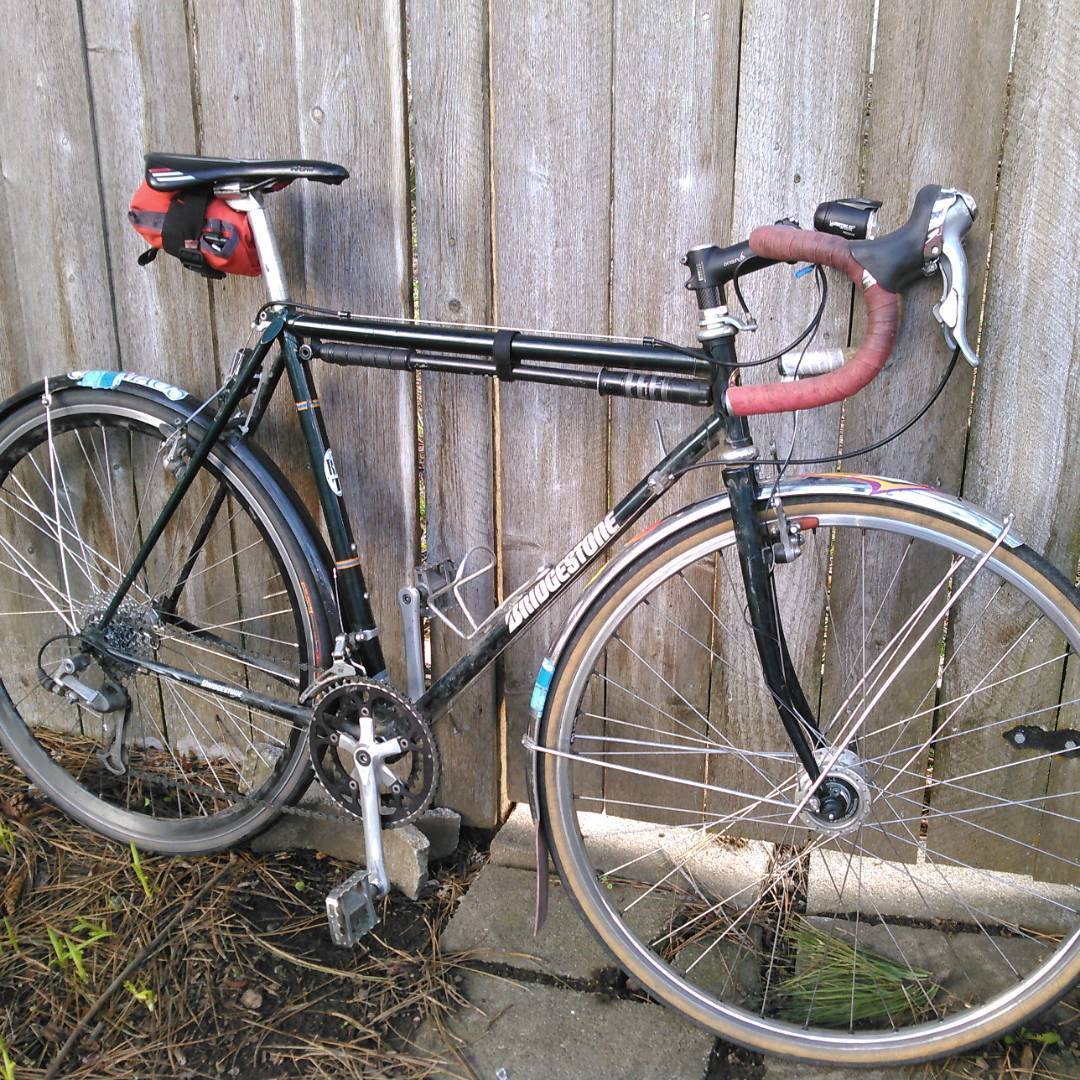 I conjured up a work bike for my #seattle mini-commutes. Little bit of everything here: specialized cranks, xtr rear der and hub, chukker and cr-18, noodles, 600 brifter and dura-ace DT, pasala, challenge, #swiftindustries burrito, IQ premium, shimano dyno. I'll fit right in.