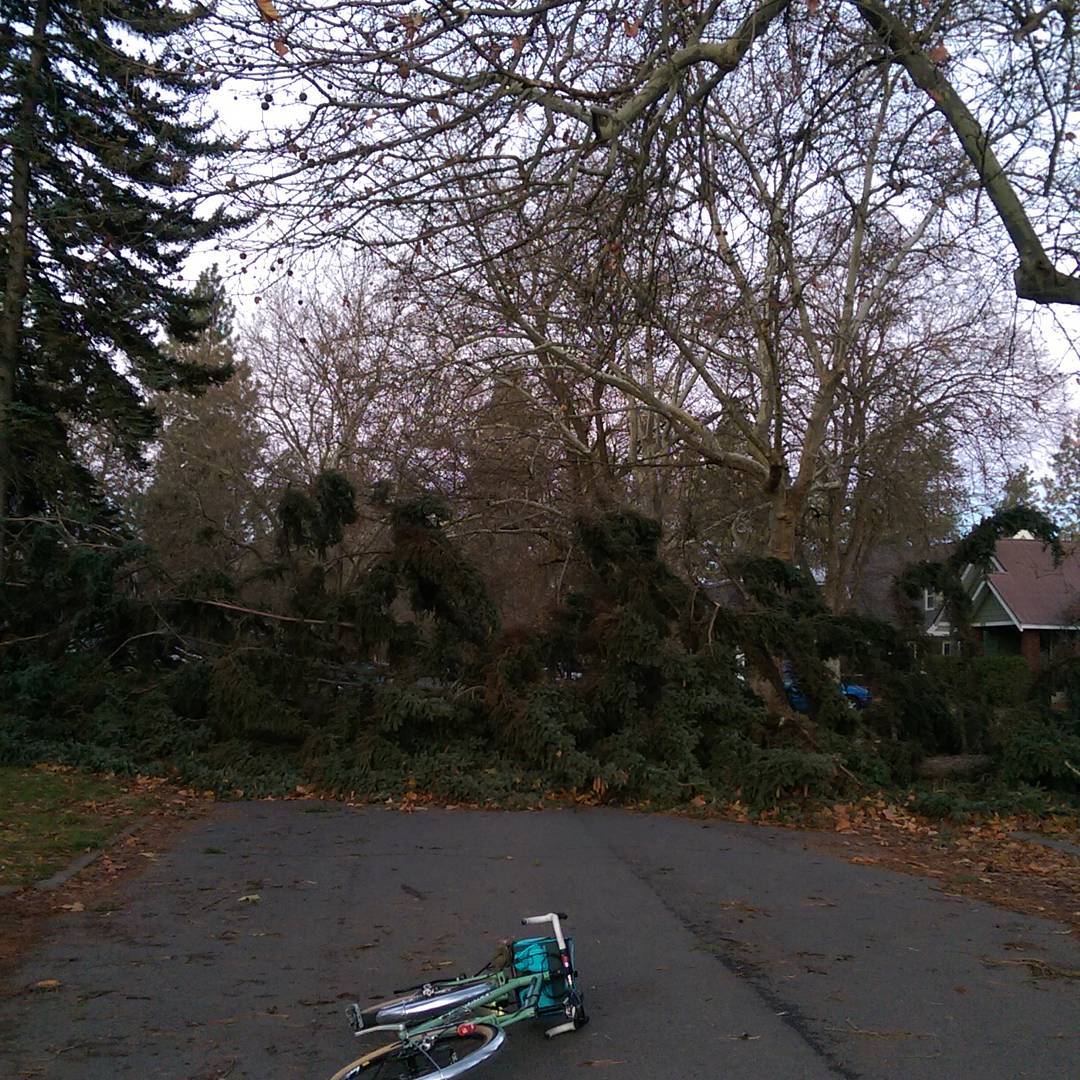 One of many downed trees that I saw this morning. #inlandwind #spokanesouthhill