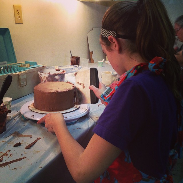 Maddie decorating her buddy's bday cake. Photo and decorating mentorship by Christa Copus.